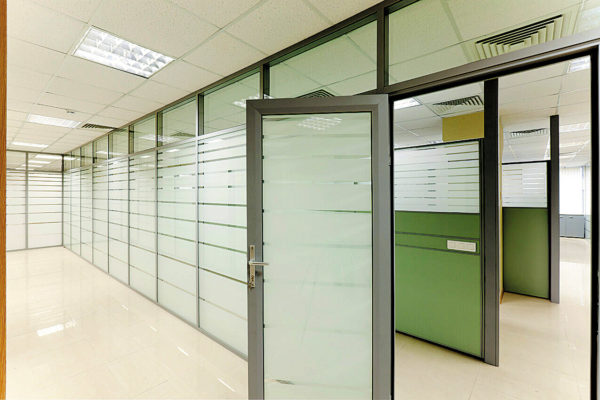 Алюминиевые противопожарные перегородки могут изготавливаться как в полностью остекленном варианте, так и в частично остекленном исполнении. Основное предназначение таких конструкций — это разделение общего помещения на несколько отдельных рабочих зон. При этом преследуется несколько целей: